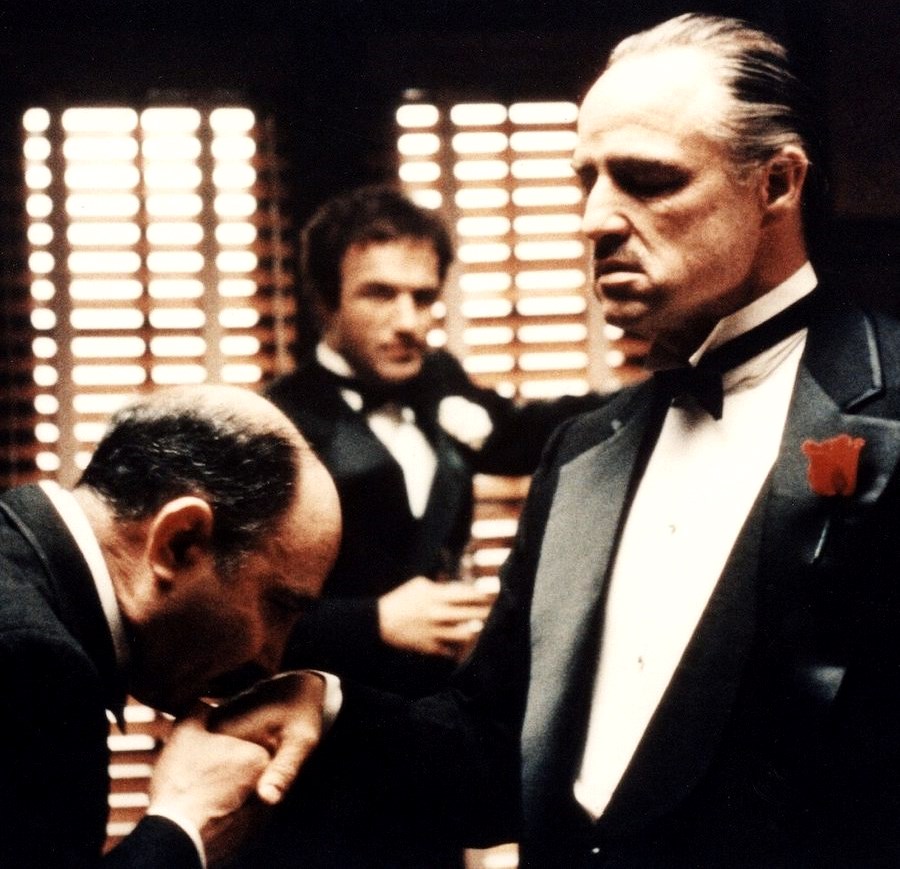 Don Vito Corleone le expresa crudamente a su hijo Michael su visión y misión en el mundo y el deber con la familia. Consignas muy semejantes a las que se enseñan en escuelas de negocios y practican en empresas. En un mundo dominado por los poderosos que manejan a su antojo los hilos, para no ser controlado hay que tener poder, dinero. Y para obtenerlo, hay que ser impiadoso.