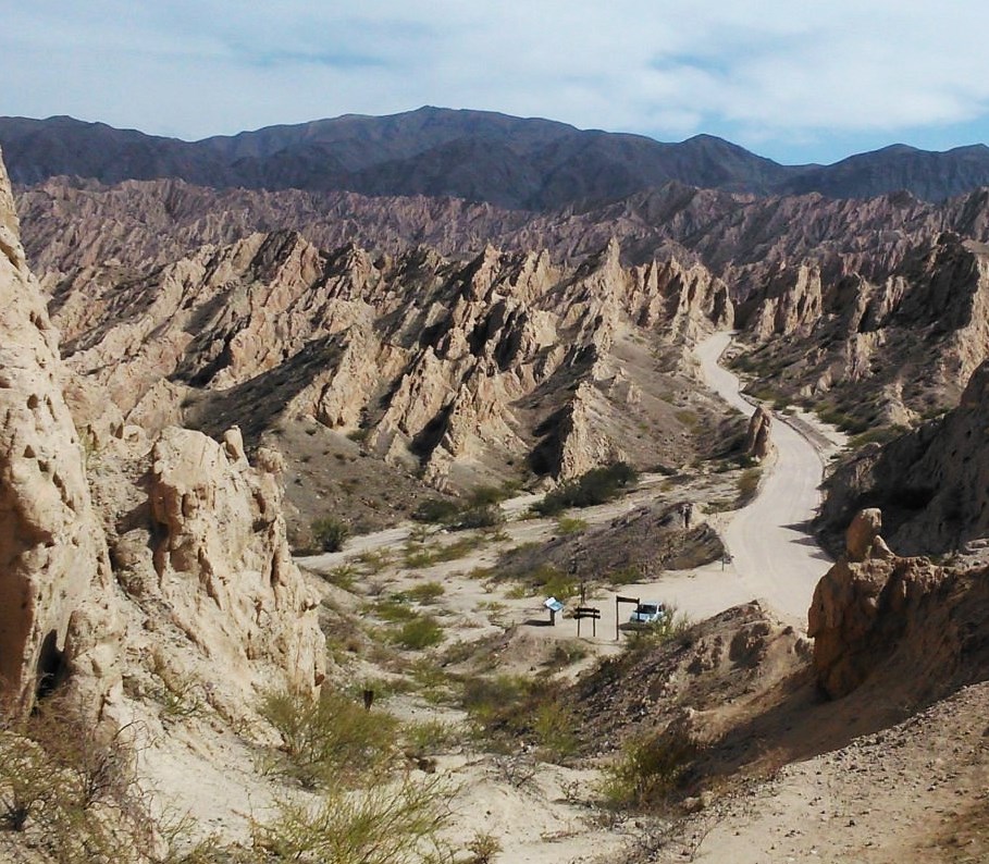 Tras cada curva se descubren gargantas y paredones verticales, con las particulares esculturas naturales. Pese a la aridez, hay algarrobos blancos y jarillas; y sendas llevando a miradores naturales, como El Ventisquero.