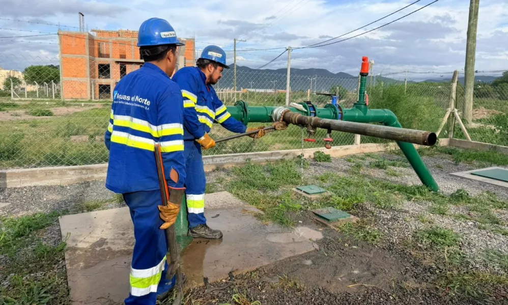 El presidente de Aguas del Norte, Ignacio Jarsún, inauguró la nueva fuente de abastecimiento que produce 130 mil litros por hora acompañado por el gerente general de la Empresa, Juan Bazán, y personal técnico y operativo. Beneficia a Parque La Vega y zonas aledañas.