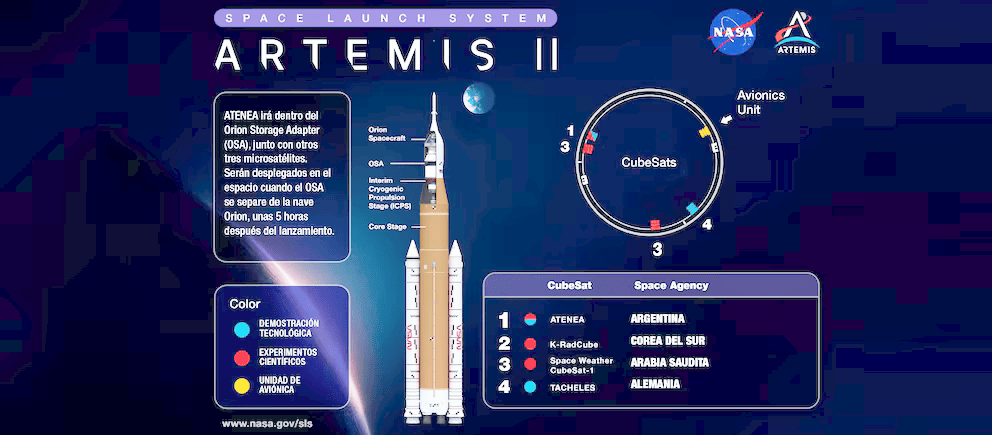 El 1 de abril, la NASA lanzó Artemis II rumbo a la luna. La nave tripulada lleva el satélite argentino Atenea. Elegido entre 31 países, es el único de Latinoamérica.