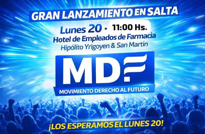 El lunes 20 de abril, el Movimiento Derecho al Futuro se presenta oficialmente en Salta. Será a las 11, en el Hotel de Trabajadores de Farmacia (Avenida Hipólito Yrigoyen 305)