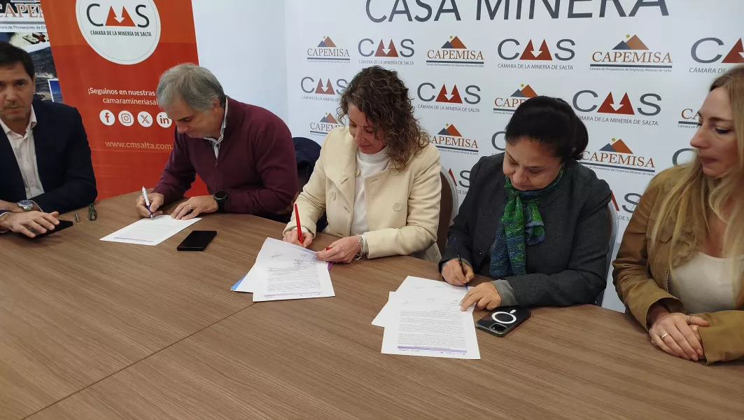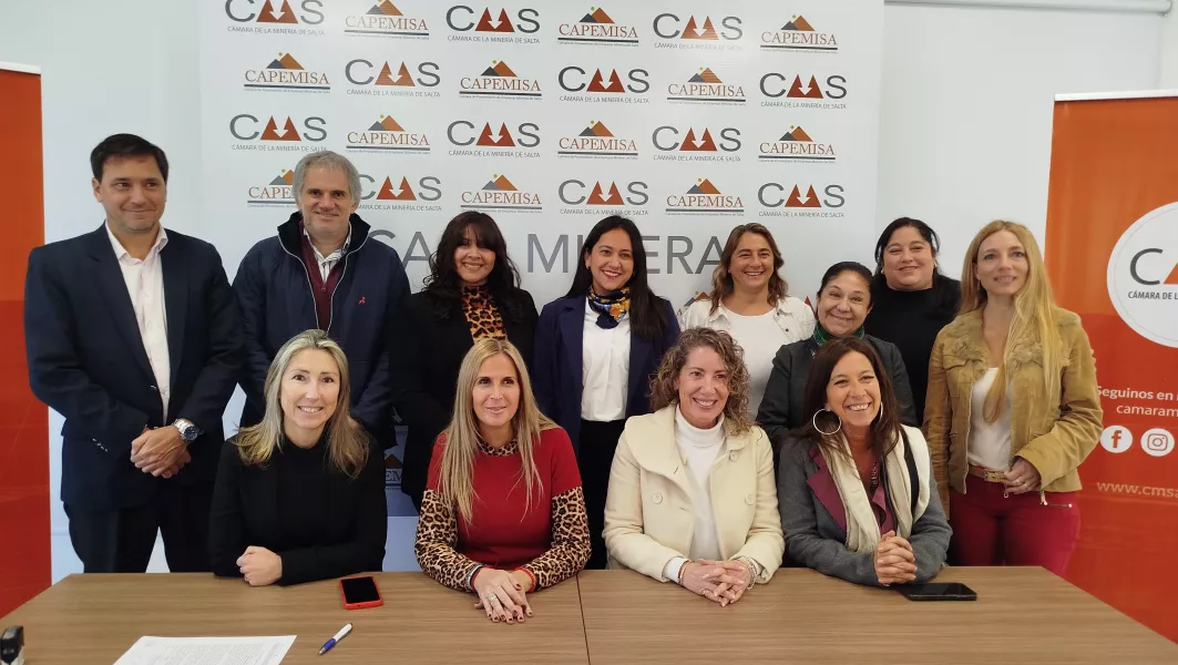 Las entidades firmaron su adhesión en las instalaciones de la Cámara de Proveedores de Empresas Mineras de Salta, ubicada en la zona norte de la ciudad, oportunidad en la que participaron el secretario de Comercio, Industria y Empleo, Rodrigo Monzo, la subsecretaria de Relaciones Institucionales del Trabajo, Soledad Gramajo, el gerente de CAPEMISA, Pablo Robbio, las responsables de la Iniciativa para “espacios igualitarios y libres de violencia”, y representantes de la red ATRAE, Belén Jiménez por la Secretaría de las Mujeres, Géneros y Diversidad, y Natalia Fuentes por el Observatorio de Violencia contra las Mujeres, y las representantes de Wichi Toledo, JSC Soluciones Integrales y Compañía Minera de Oriente, Paola Ríos, Ana Calisaya y Soledad Nigro y Laura Isola y Camila Urbano Salvatierra, respectivamente.